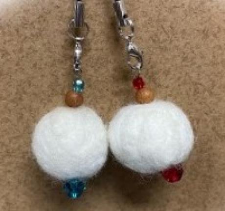羊毛でフェルトボールを作り、好きなビーズと組み合わせて