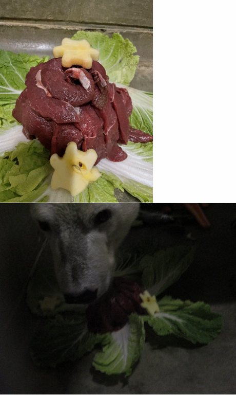 気合を入れてキレイに盛り付けましたが、バフィンは特に感動する様子などは一切なく、いつも通り食べていました(笑)