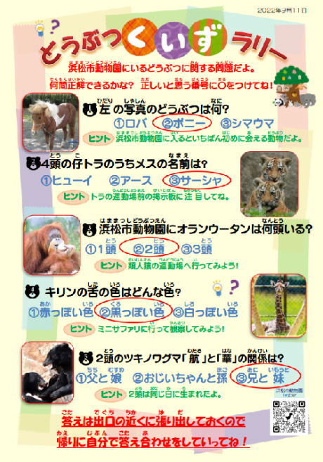 9月11日に、どうぶつクイズラリーを行いました。