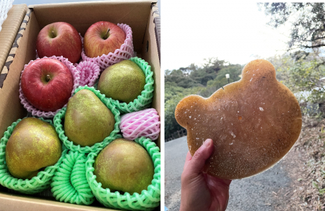 先日、バフィンとモモへ宝石のようなリンゴと洋ナシの差し入れがありました!