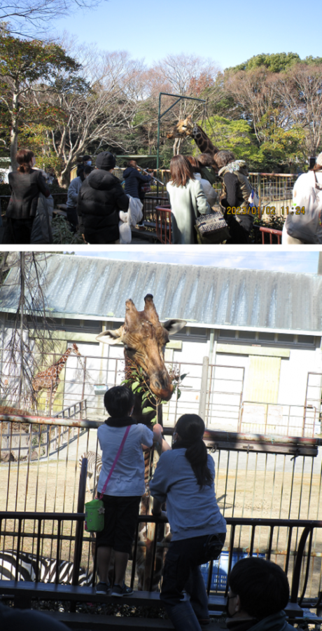 ▽ “キリンにエサやり”のイベントを開催