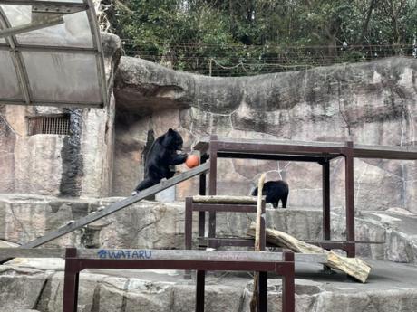 今回ツキノワグマのワタルとハナにも活性化を目的にいろいろ与えてみました。