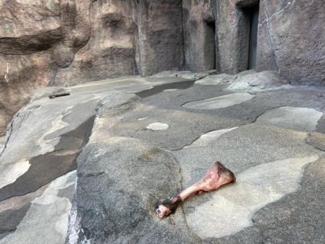 閉園後にパドックの掃除をした時に食べ残してあった骨を回収して合わせてみたら、足1本の骨格標本のようになりました。