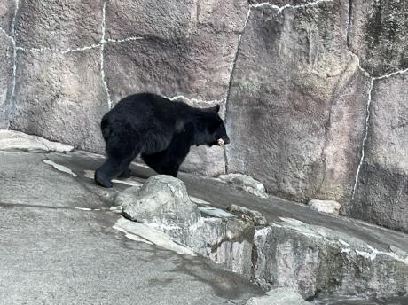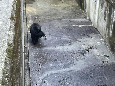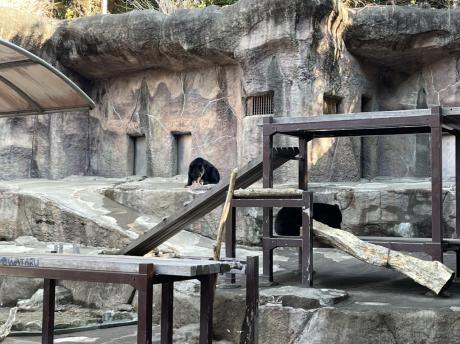浜松のツキノワグマ2頭は普段仲良しですが、エサになると喧嘩に発展することもあるので、2本用意しました。