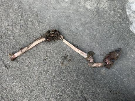 (注)今回はシカの足の部分を与えています。写真がグロテスクだと感じるかもしれませんがそのままを掲載します。