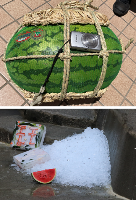 ホッキョクグマ運動場ではイベントでクラッシュアイス、氷プレートと差し入れでいただいた超巨大スイカ、湯たんぽをモモにプレゼントしましたよ~🐻