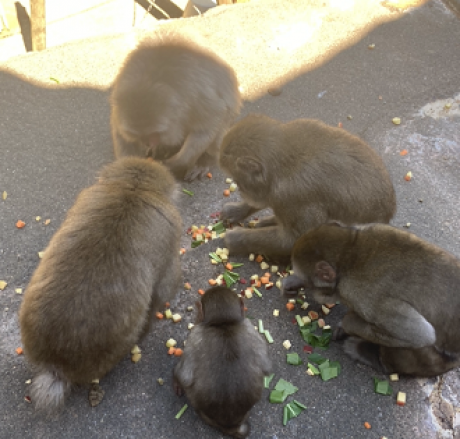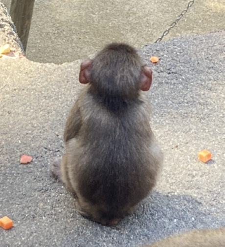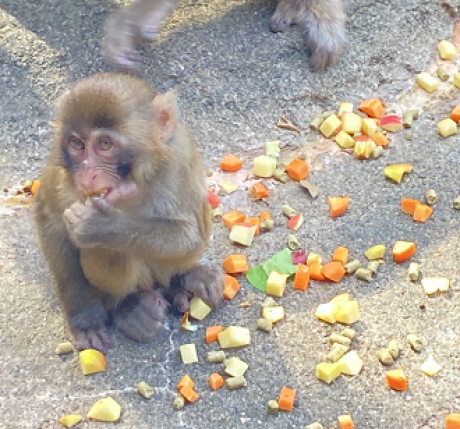 モモクロ(♂)は現在1歳の、サル山最年少ルーキーです!幼いゆえに怖いもの知らずのモモクロはボスザルや他の大人たちに臆することなくエサを頬張る、体の大きさと態度の大きさのギャップありすぎルーキーです。
