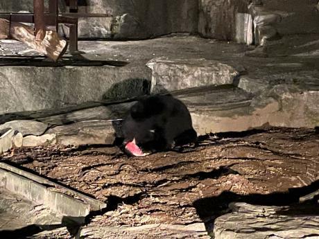 ツキノワグマも何度も差し入れを頂いていまして、最近ではスイカ、ハチミツ、桃、きゅうりなんかを食べました。