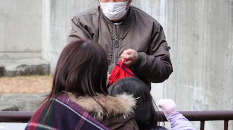 ↓ジャングルジムに吊った紙袋を物色