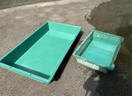 暑くなり始めた5月頃から展示場にプラ舟プールを設置していました。