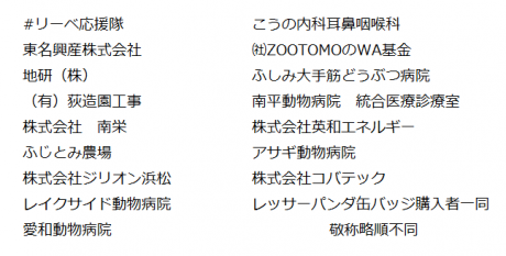 サポーターの皆様には、日頃より浜松市動物園をご支援いただき深く感謝申し上げます。