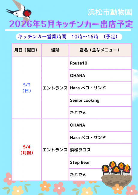 2026年5月上旬のキッチンカー出店予定を掲載します。