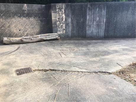 やはり、壁の向こう側にまとめてあった竹の残骸に鼻が届いたから取れるだけ取って遊んだんだな
