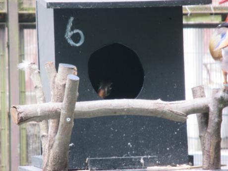 ある日、メスが巣箱から出てきたので、巣箱を覗きました。