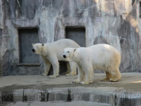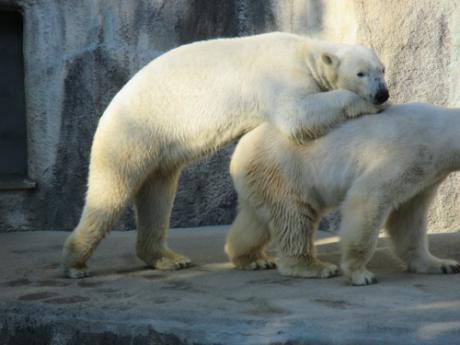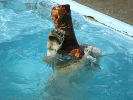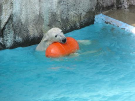 気温が上がったので、バフィンとモモはプールや土浴び場でよく遊んでいました。