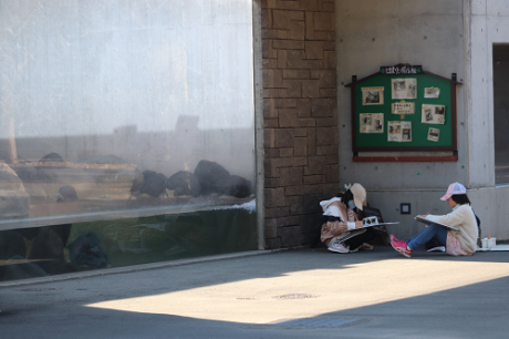 ▽ ゾウ広場にてボランティアさんが画用紙を配ってくれました。