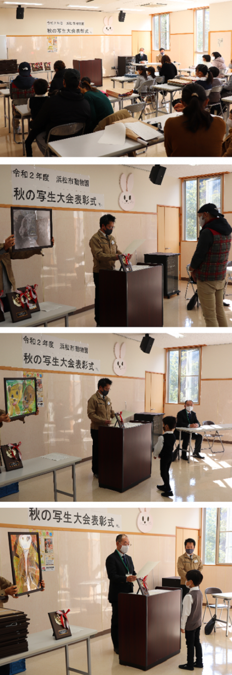 厳正なる審査の結果、浜松市長賞1点、浜松市教育長賞1点、静岡新聞社・静岡放送賞1点 浜松市動物園長賞1点 浜松市動物園協会理事長賞1点 審査員特別賞1点