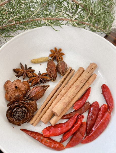 (シナモン/八角/ローズマリー/くちなし/ターメリック/唐辛子/ターメリック)