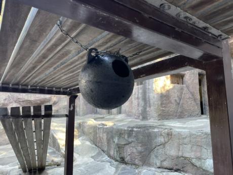 上手く回して穴を下に向けないとエサは出ませんが、木が邪魔をするはずです。
