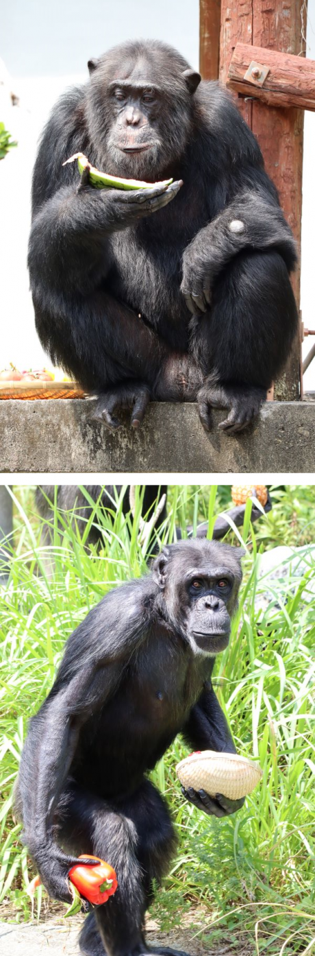類人猿の皆さんは、新鮮な夏野菜を美味しそうに食べてくれました。