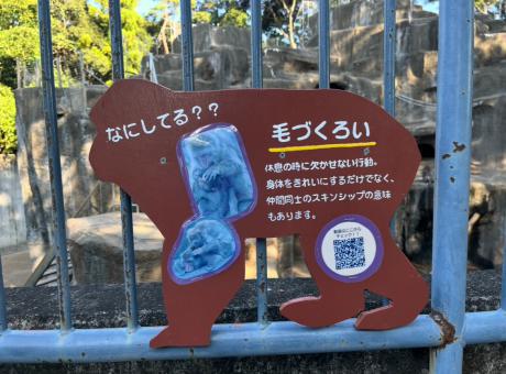 ニホンザル展示場に新しく「サルなにしてる?」看板を設置しました!