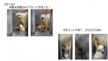 そして、3月14日に男鹿水族館GAOにモモと子どもに会いに行ってきた様子をご紹介しました。