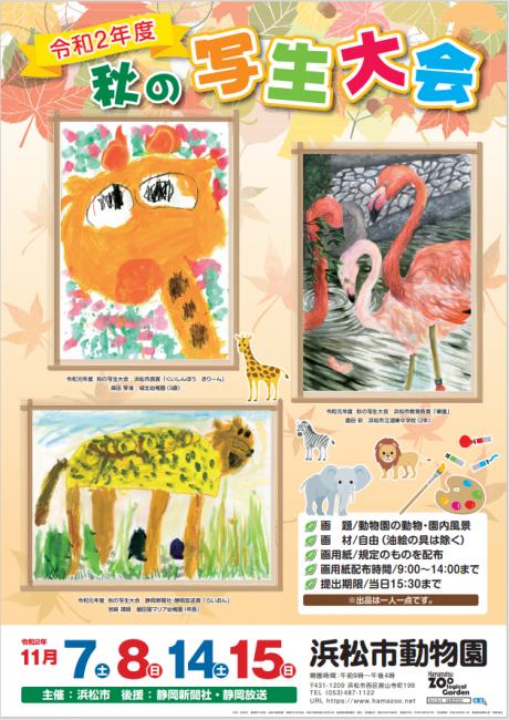 規定の画用紙配布:9:00~14:00(ゾウ広場) 提出:当日15:30まで(ゾウ広場) ※1人1点まで |