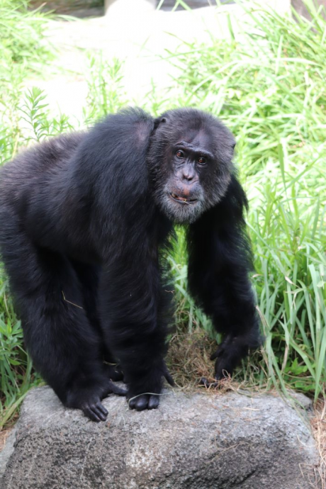浜松市動物園には、ゴリラの「ショウ♂」、オランウータンの「バリ♂」と「ムカ♀」、チンパンジーの「ジュン♂」「チコ♀」「チェリー♀」の6頭の類人猿が暮らしています。