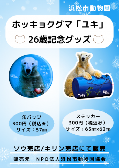 浜松市動物園協会では、このたびホッキョクグマ「ユキ」26歳記念グッズを作りました。