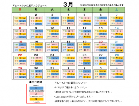 3月のアムールトラの展示スケジュール予定をお知らせします。