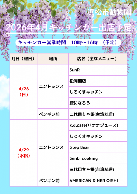 2026年4月後半のキッチンカー出店予定を掲載します。